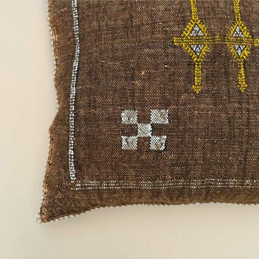 Brown Sabra Cactus Silk Kilim Pillow Cover | Handwoven Moroccan Home Decor