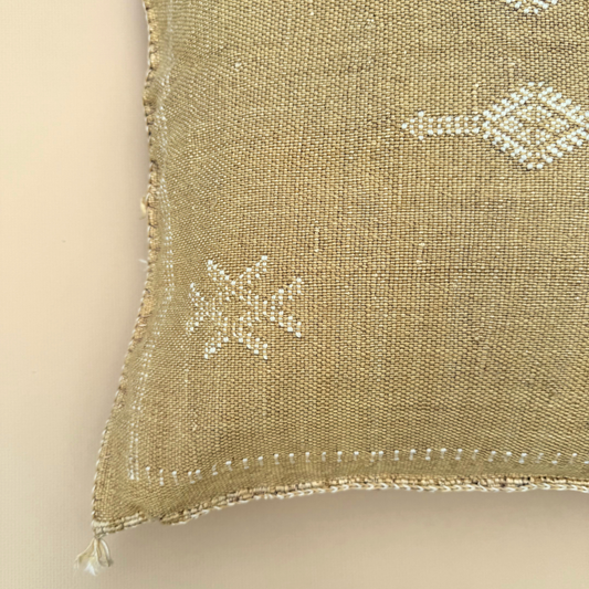 Light Gold Sabra Cactus Silk Kilim Pillow Cover | Handwoven Moroccan Home Decor
