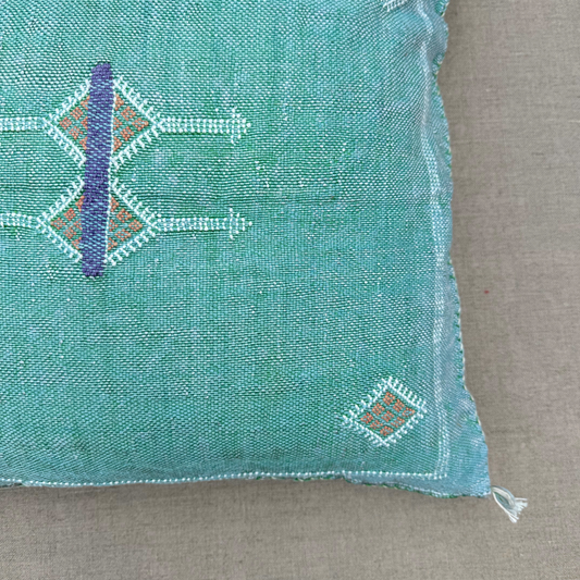 Light Green Sabra Cactus Silk Kilim Pillow Cover | Handwoven Moroccan Home Decor