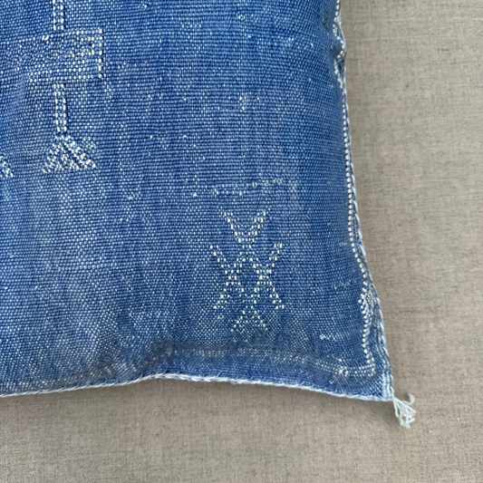 Blue Sabra Cactus Silk Kilim Pillow Cover | Handwoven Moroccan Home Decor