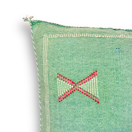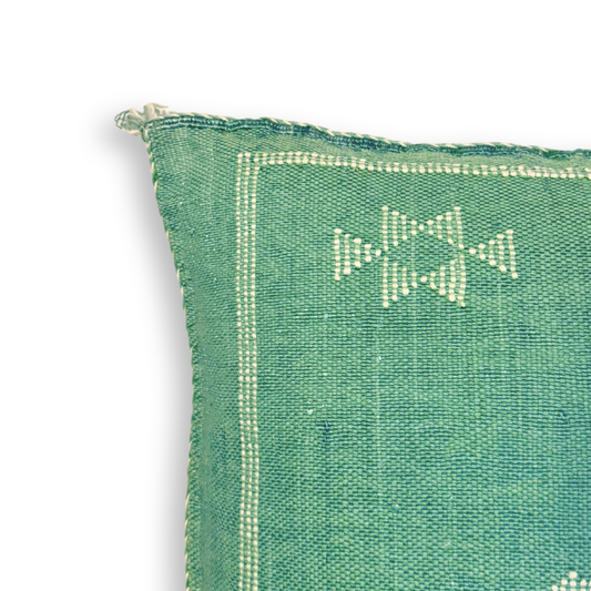 Green Sabra Cactus Silk Kilim Pillow Cover | Handwoven Moroccan Home Decor