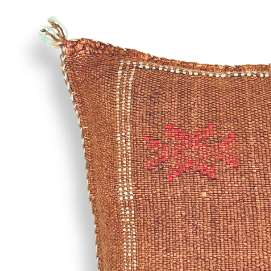 Dark Terracotta Sabra Cactus Silk Kilim Pillow Cover | Handwoven Moroccan Home Decor