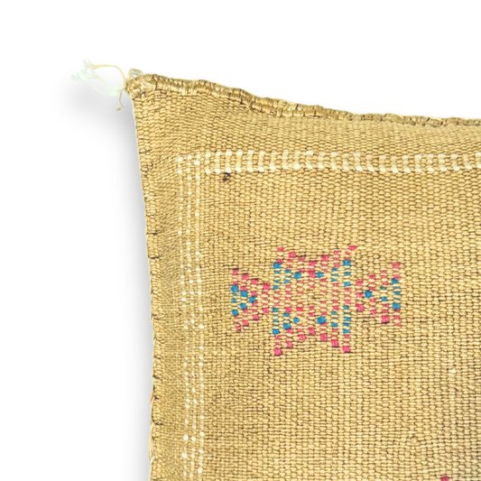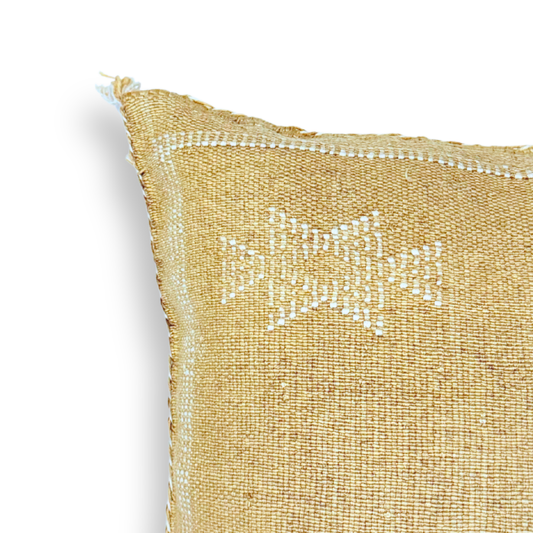 Light Tan Sabra Cactus Silk Kilim Pillow Cover | Handwoven Moroccan Home Decor