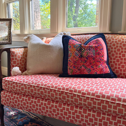 Embroidered Huipil & Handwoven Corte Throw Pillow Cover