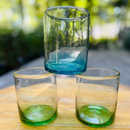 Handblown Teal Old Fashioned Glasses, Set of 2
