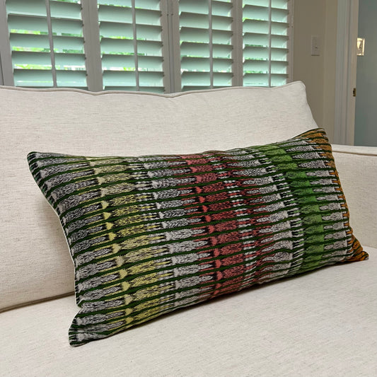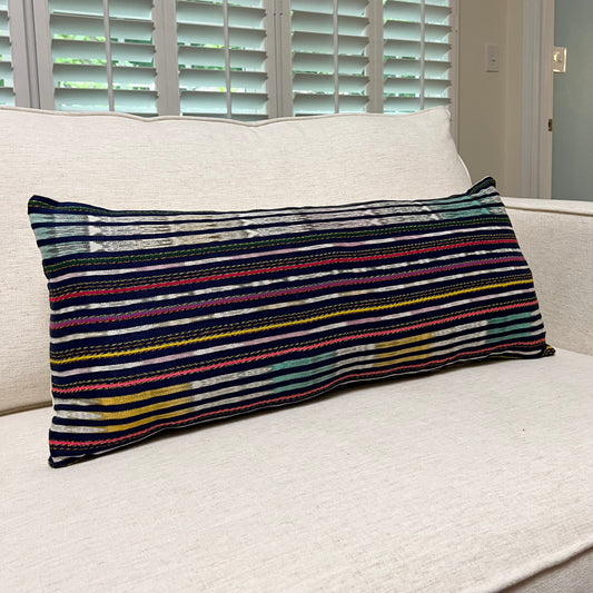 Handwoven Vintage Fabric Long Lumbar Pillow with Embroidery