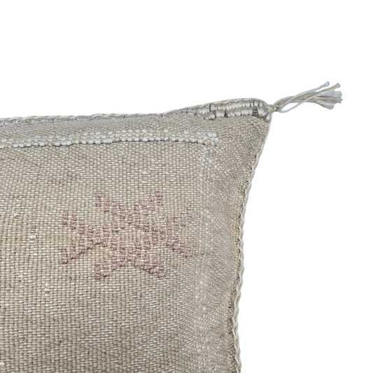 Light Tan Sabra Cactus Silk Kilim Pillow Cover | Handwoven Moroccan Home Decor