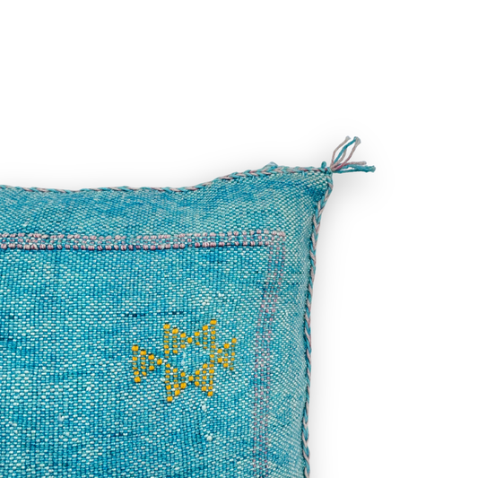Turquoise Sabra Cactus Silk Kilim Pillow Cover | Handwoven Moroccan Home Decor
