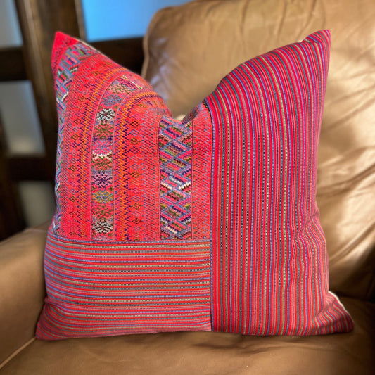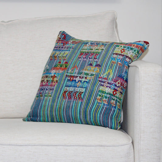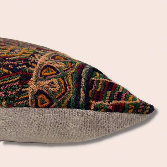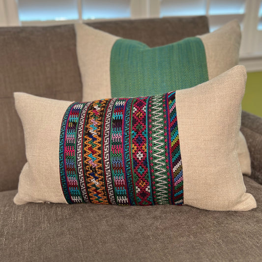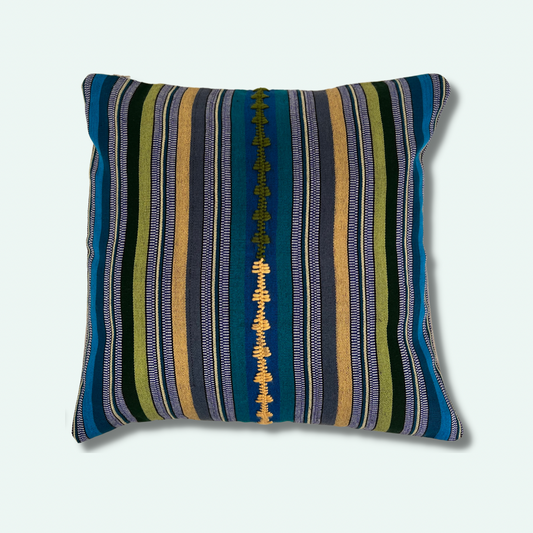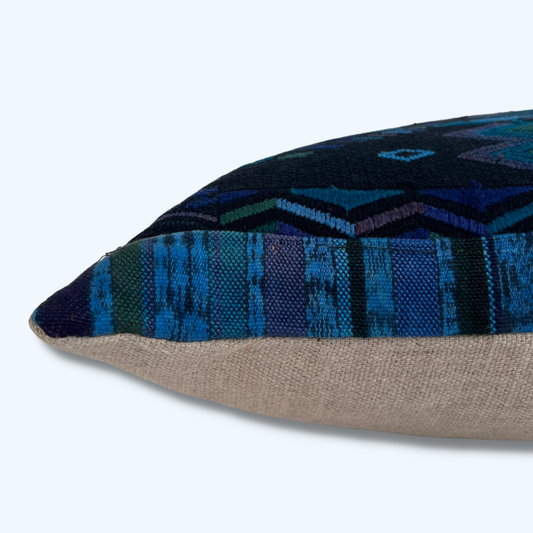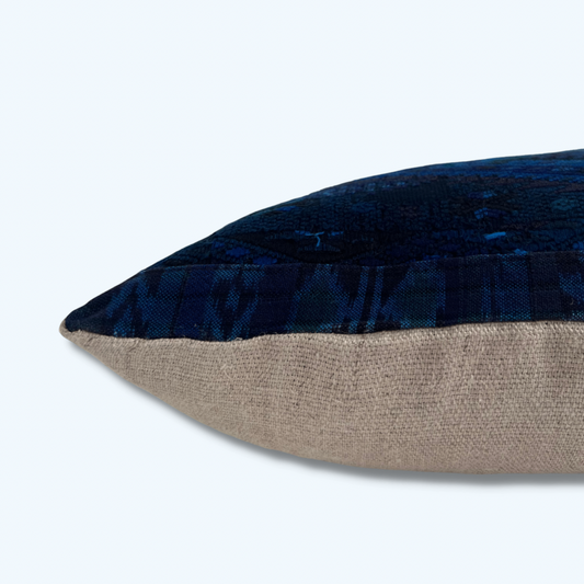 Handwoven Color Block & Hemp Pillow - Navy & Blue