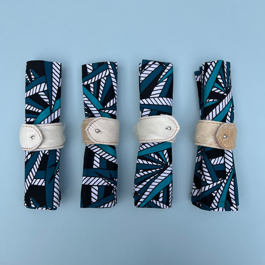 Hair on Hide Stud Closure Napkin Rings (White/Cream)