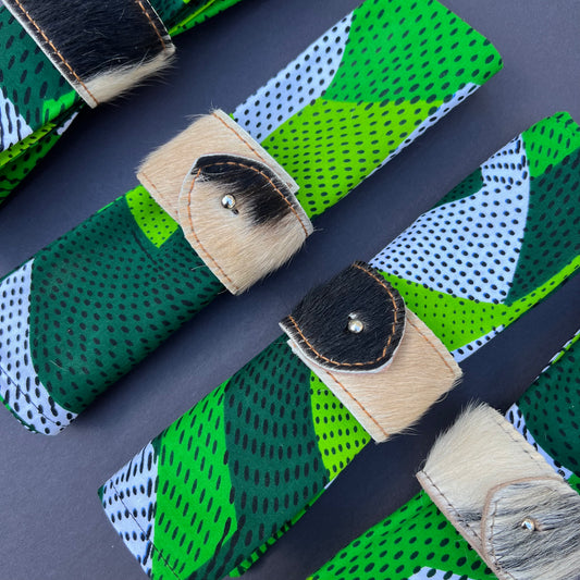 Hair on Hide Stud Closure Napkin Rings (Black/Cream)