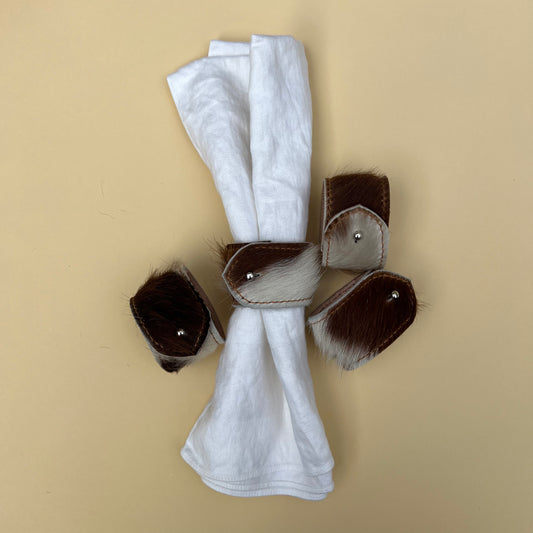Hair on Hide Stud Closure Napkin Rings (Brown/Cream)