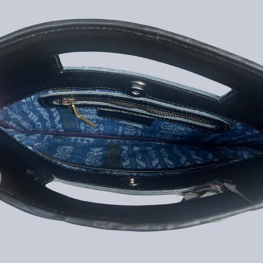 Leather Handbag with Huipil Accent