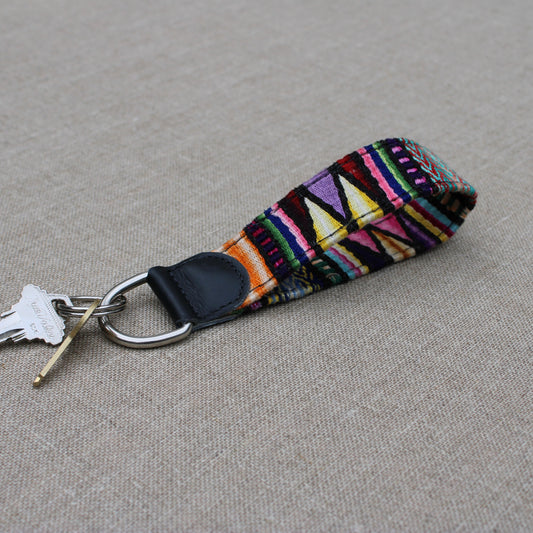 Handwoven Keychain with Leather | Upcycled Mayan Textile Key Fob