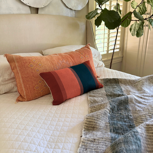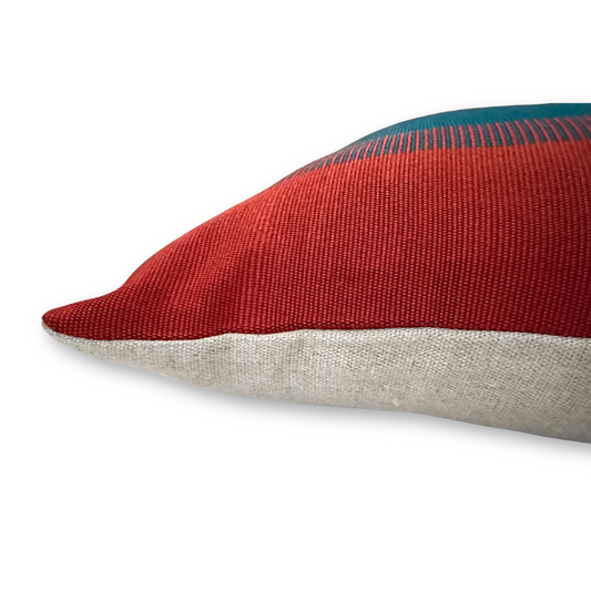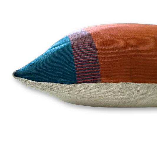 Handwoven Color Block & Hemp Pillow - Light Terra Cotta & Blue