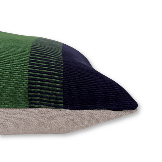 Handwoven Color Block & Hemp Pillow - Navy & Green