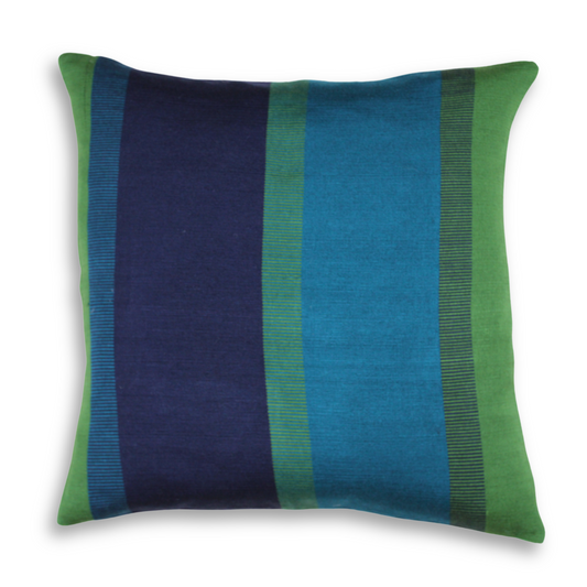 Handwoven Color Block & Hemp Pillow - Blue & Green