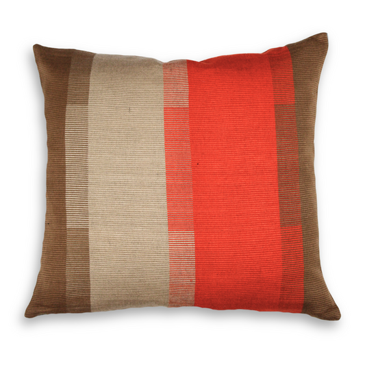 Handwoven Color Block & Hemp Pillow - Light & Dark Terra Cotta