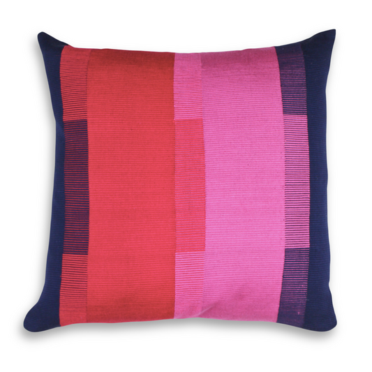 Handwoven Color Block & Hemp Pillow - Pink & Navy