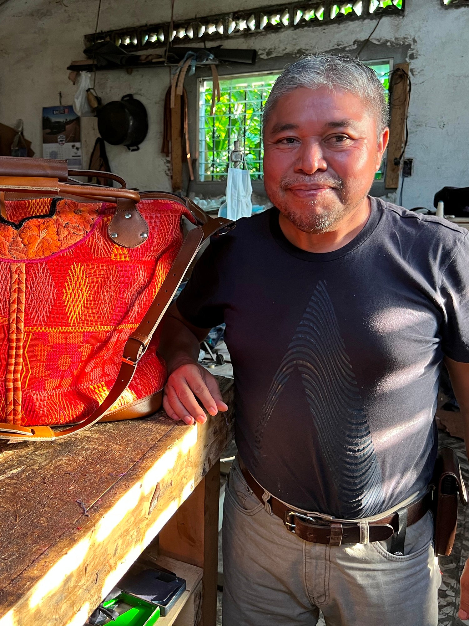 CUERO MALEC is a leather shop in Samayac founded by Lorenzo Xum Ortiz. Lorenzo began working with leather when he was ten years old, and now he employs around 10 to 15 people in his shop. He and his team are skilled at using leather to transform second-hand clothing, including traditional Guatemalan huipiles, into beautiful purses and bags.