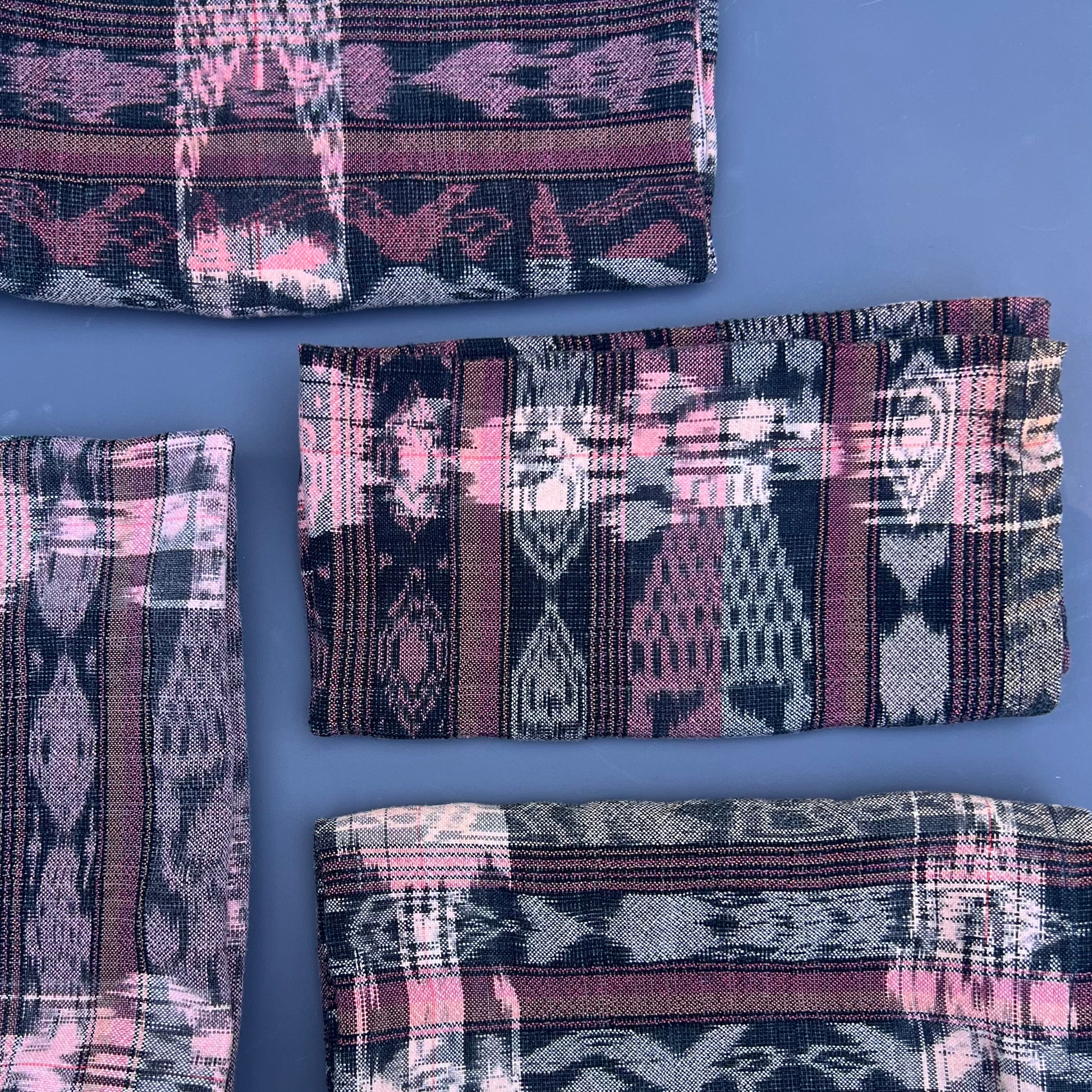 Handwoven vintage cotton fabrics make wonderful napkins for everyday use! Intertwined's colorful cloth napkins are sustainably made from a second-hand cortes, traditional handwoven skirts worn by Mayan women in Guatemala. Tailors at Ruth & Naomi in Guatmala use their expert sewing skills to transform each corte into one-of-a-kind sets of napkins.