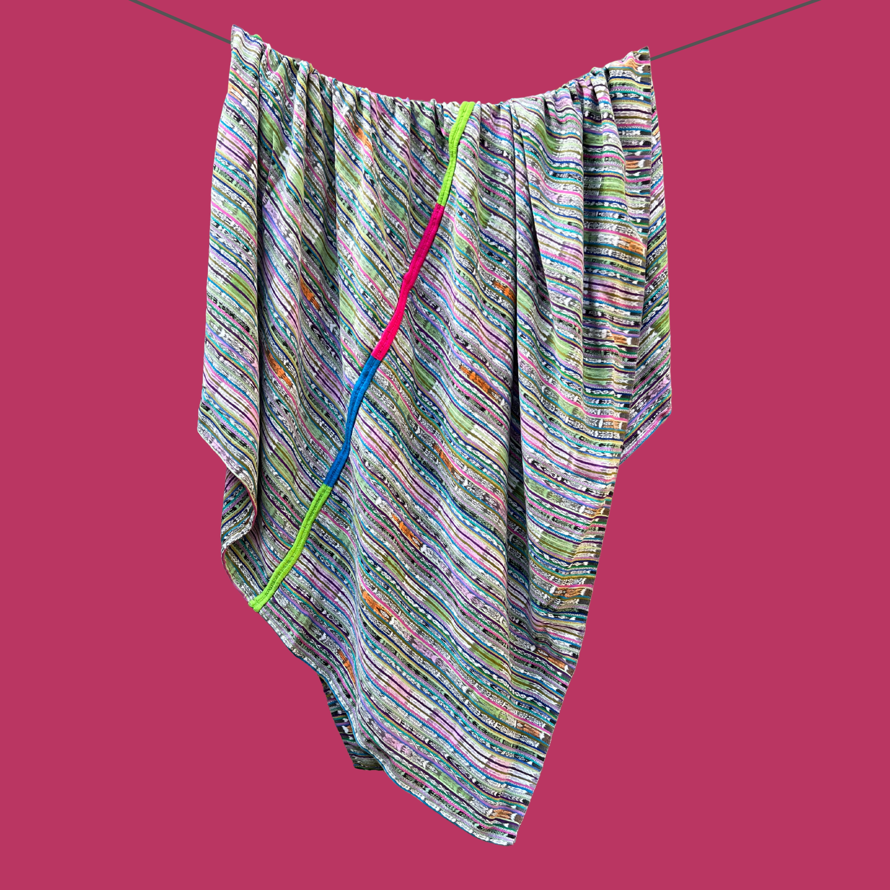 Wrap yourself in one of Intertwined’s ultra-cozy, colorful handwoven cotton blankets, crafted from repurposed Mayan cortes (skirts) worn by skilled artisans in Guatemala. Each sustainable, ethically made blanket features a vibrant hand-embroidered pattern down the center, perfect for brightening your home décor. Ideal for cozy nights indoors, picnics, or even as a unique and colorful tablecloth, this one-of-a-kind, artisan-crafted blanket by the Ruth & Naomi team brings warmth, beauty, and joyful craftsmanship to every space.