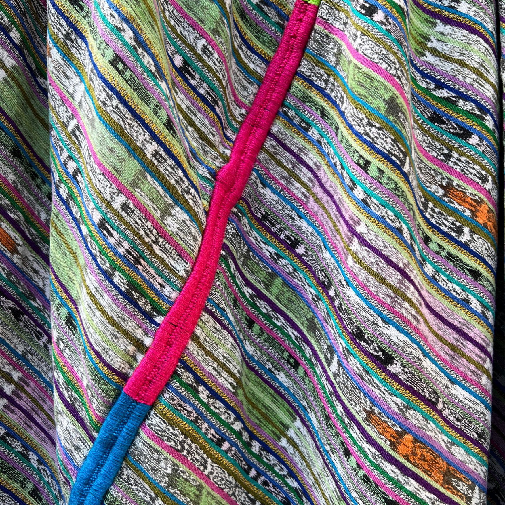 This product is made with handmade, upcycled fabric. We believe the minor imperfections associated with vintage fabric are part of the charm and uniqueness of the item. We do our best to take photos that accurately represent the true colors and worn nature of the handwoven fabric, but colors vary across monitors, and photos can’t highlight all aspects of a product.