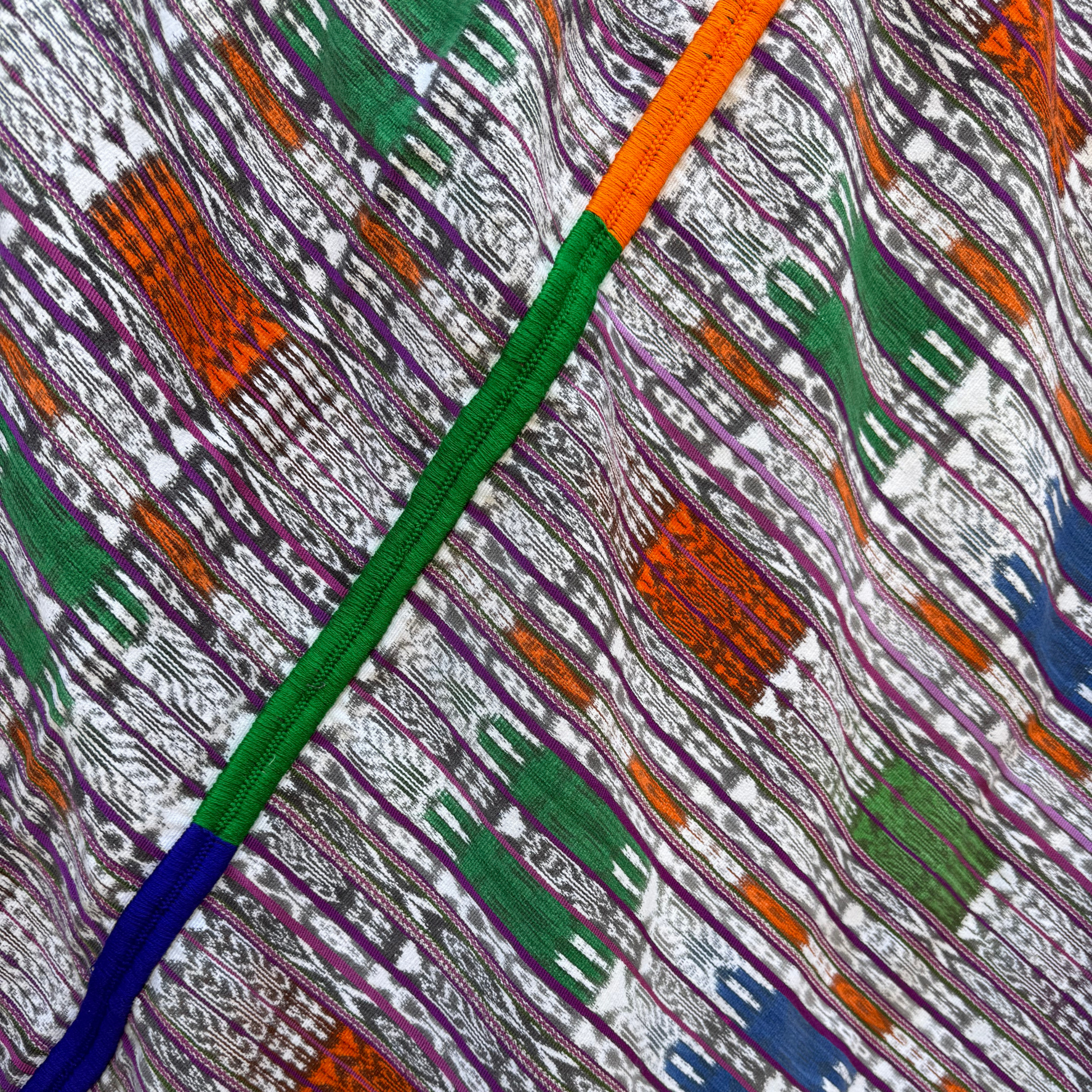 Wrap yourself in one of Intertwined’s ultra-cozy, colorful handwoven cotton blankets, crafted from repurposed Mayan cortes (skirts) worn by skilled artisans in Guatemala. Each sustainable, ethically made blanket features a vibrant hand-embroidered pattern down the center, perfect for brightening your home décor. Ideal for cozy nights indoors, picnics, or even as a unique and colorful tablecloth, this one-of-a-kind, artisan-crafted blanket by the Ruth & Naomi team brings warmth, beauty, and joyful craftsmanship to every space.