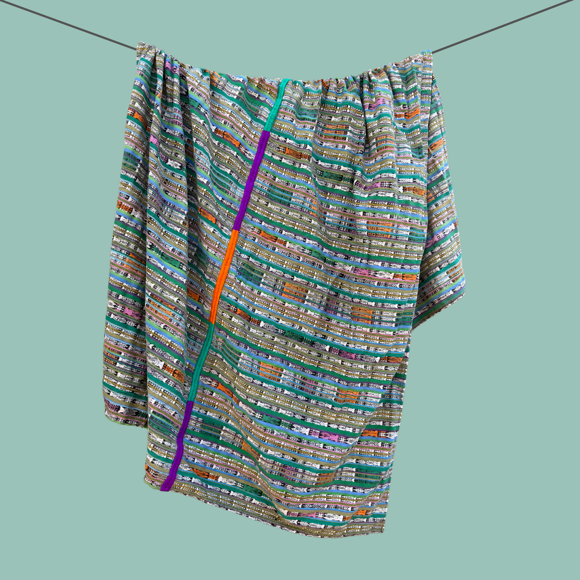 Wrap yourself in one of Intertwined’s ultra-cozy, colorful handwoven cotton blankets, crafted from repurposed Mayan cortes (skirts) worn by skilled artisans in Guatemala. Each sustainable, ethically made blanket features a vibrant hand-embroidered pattern down the center, perfect for brightening your home décor. Ideal for cozy nights indoors, picnics, or even as a unique and colorful tablecloth, this one-of-a-kind, artisan-crafted blanket by the Ruth & Naomi team brings warmth, beauty, and joyful craftsmanship to every space.