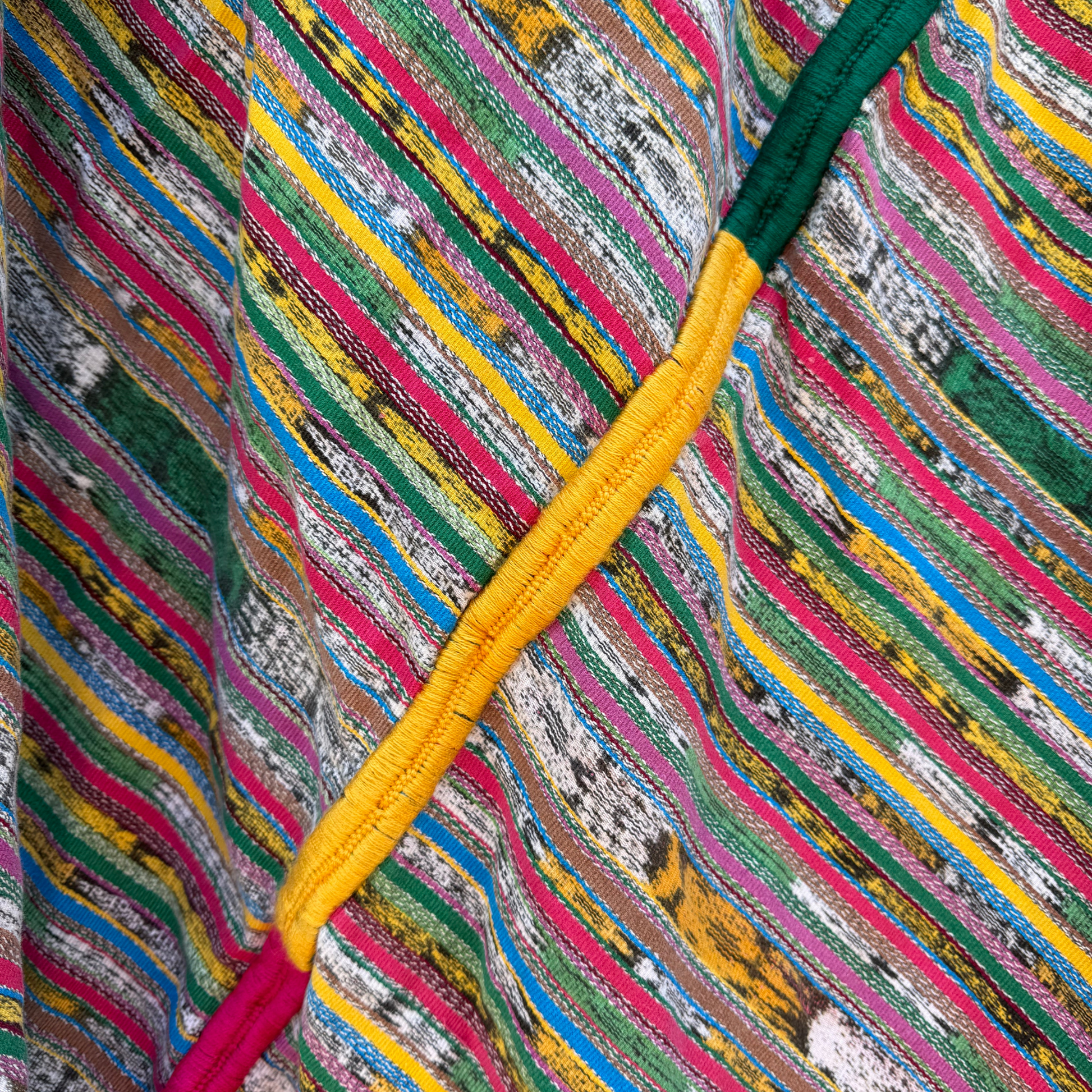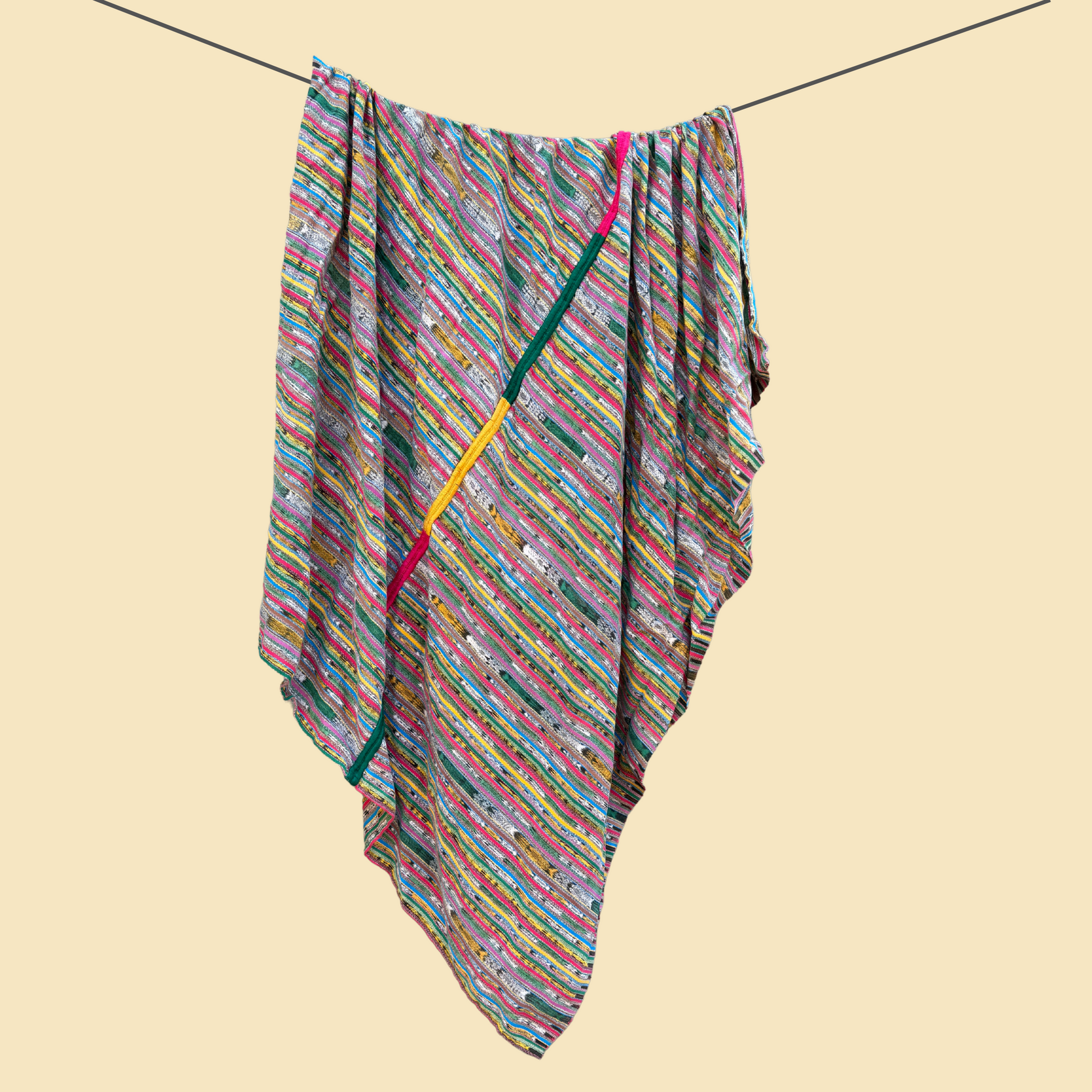 Wrap yourself in one of Intertwined’s ultra-cozy, colorful handwoven cotton blankets, crafted from repurposed Mayan cortes (skirts) worn by skilled artisans in Guatemala. Each sustainable, ethically made blanket features a vibrant hand-embroidered pattern down the center, perfect for brightening your home décor. Ideal for cozy nights indoors, picnics, or even as a unique and colorful tablecloth, this one-of-a-kind, artisan-crafted blanket by the Ruth & Naomi team brings warmth, beauty, and joyful craftsmanship to every space.