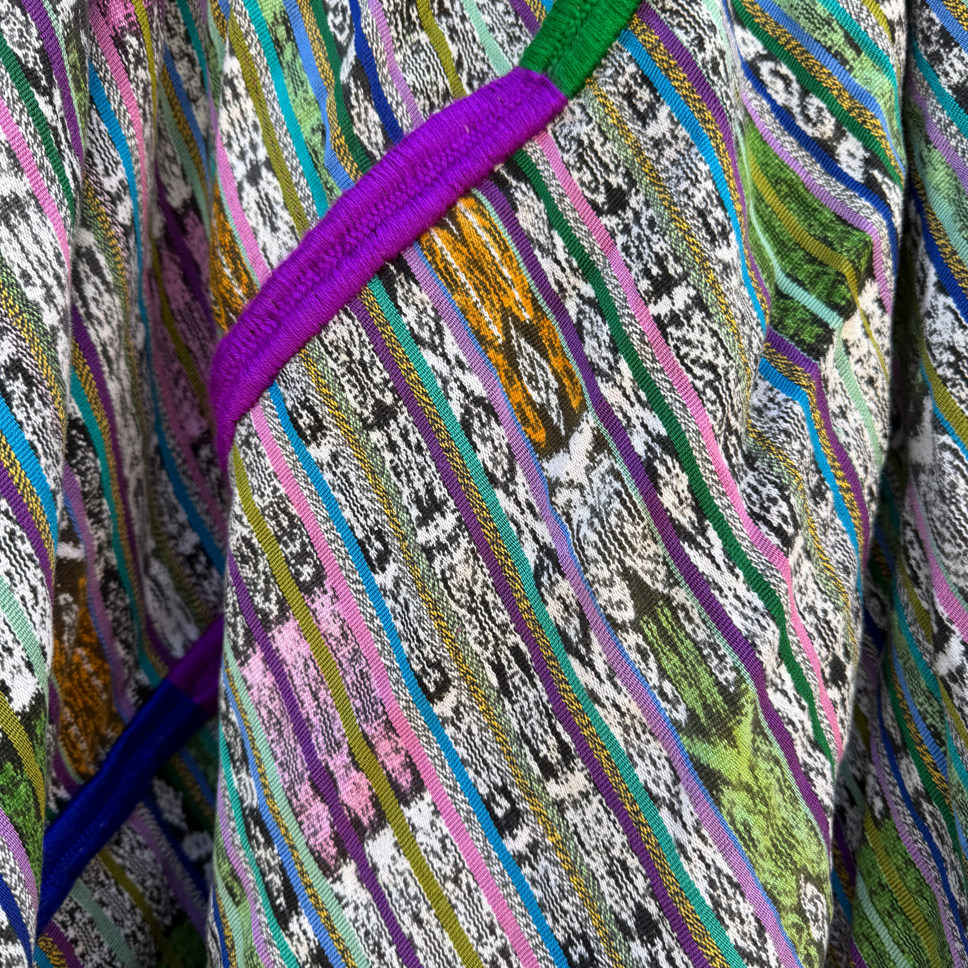 Wrap yourself in one of Intertwined’s ultra-cozy, colorful handwoven cotton blankets, crafted from repurposed Mayan cortes (skirts) worn by skilled artisans in Guatemala. Each sustainable, ethically made blanket features a vibrant hand-embroidered pattern down the center, perfect for brightening your home décor. Ideal for cozy nights indoors, picnics, or even as a unique and colorful tablecloth, this one-of-a-kind, artisan-crafted blanket by the Ruth & Naomi team brings warmth, beauty, and joyful craftsmanship to every space.
