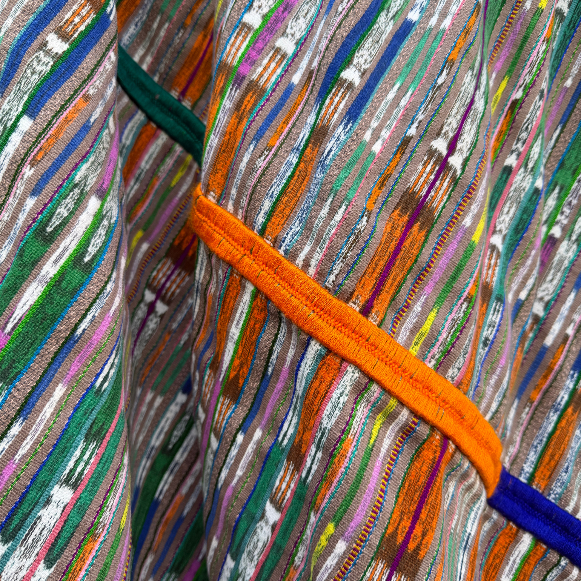 Wrap yourself in one of Intertwined’s ultra-cozy, colorful handwoven cotton blankets, crafted from repurposed Mayan cortes (skirts) worn by skilled artisans in Guatemala. Each sustainable, ethically made blanket features a vibrant hand-embroidered pattern down the center, perfect for brightening your home décor. Ideal for cozy nights indoors, picnics, or even as a unique and colorful tablecloth, this one-of-a-kind, artisan-crafted blanket by the Ruth & Naomi team brings warmth, beauty, and joyful craftsmanship to every space.