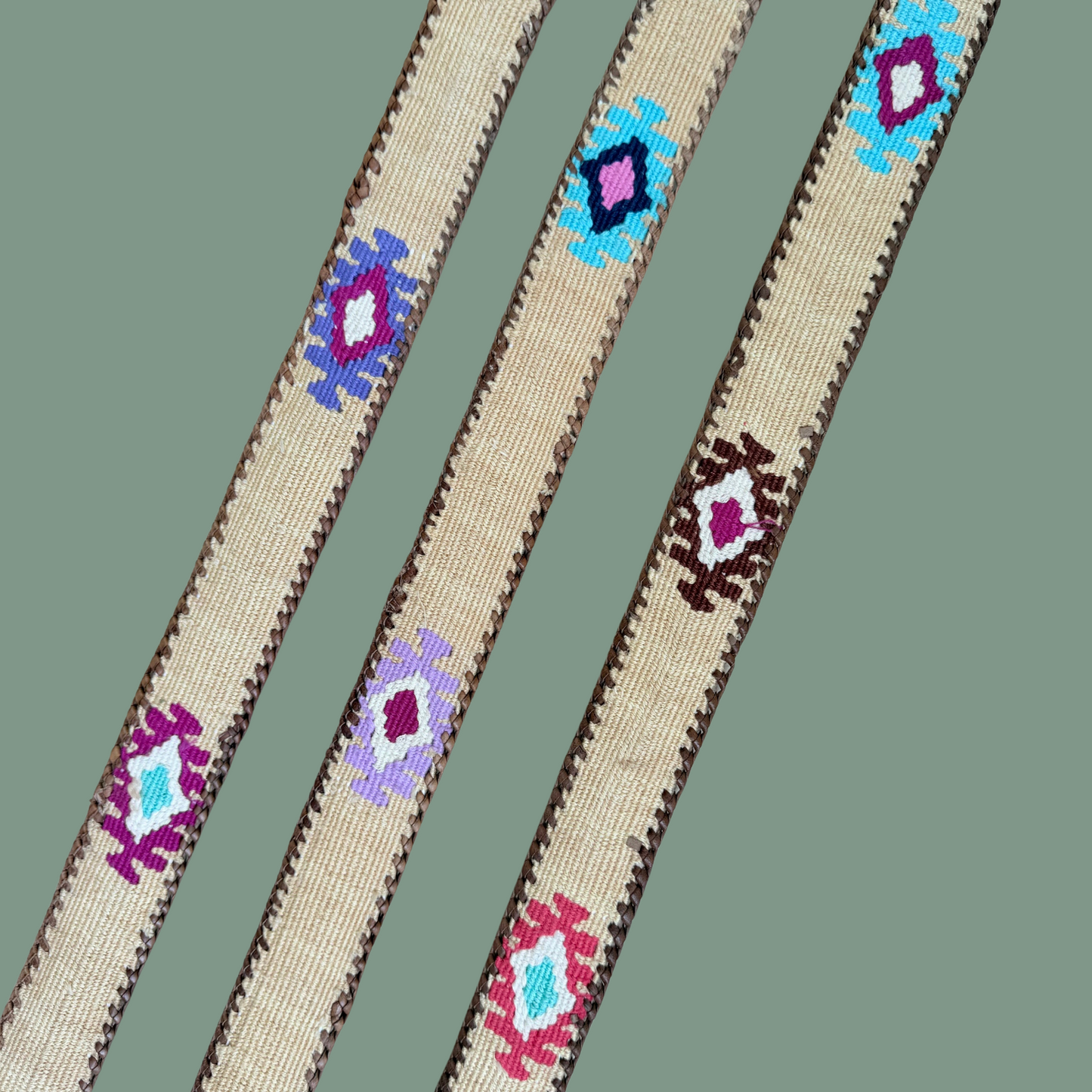 Wrap your waist in colorful, handcrafted style with our Cream Handwoven Guatemalan Whip-Stitched Belt. Featuring a vibrant, intricate tribal design, this artisan-made belt is woven by skilled Guatemalan hands, backed with durable vegetable-tanned leather, and finished with a classic leather buckle. Perfect as a stylish, unisex accessory that blends fashion with function, adding a touch of handmade craftsmanship to any outfit.