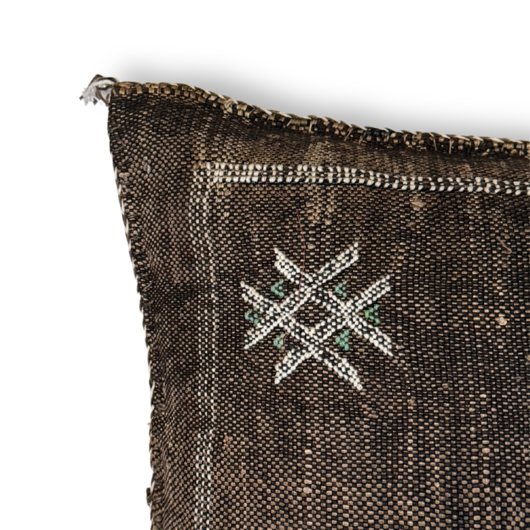 Dark Brown Sabra Cactus Silk Kilim Pillow Cover | Handwoven Moroccan Home Decor