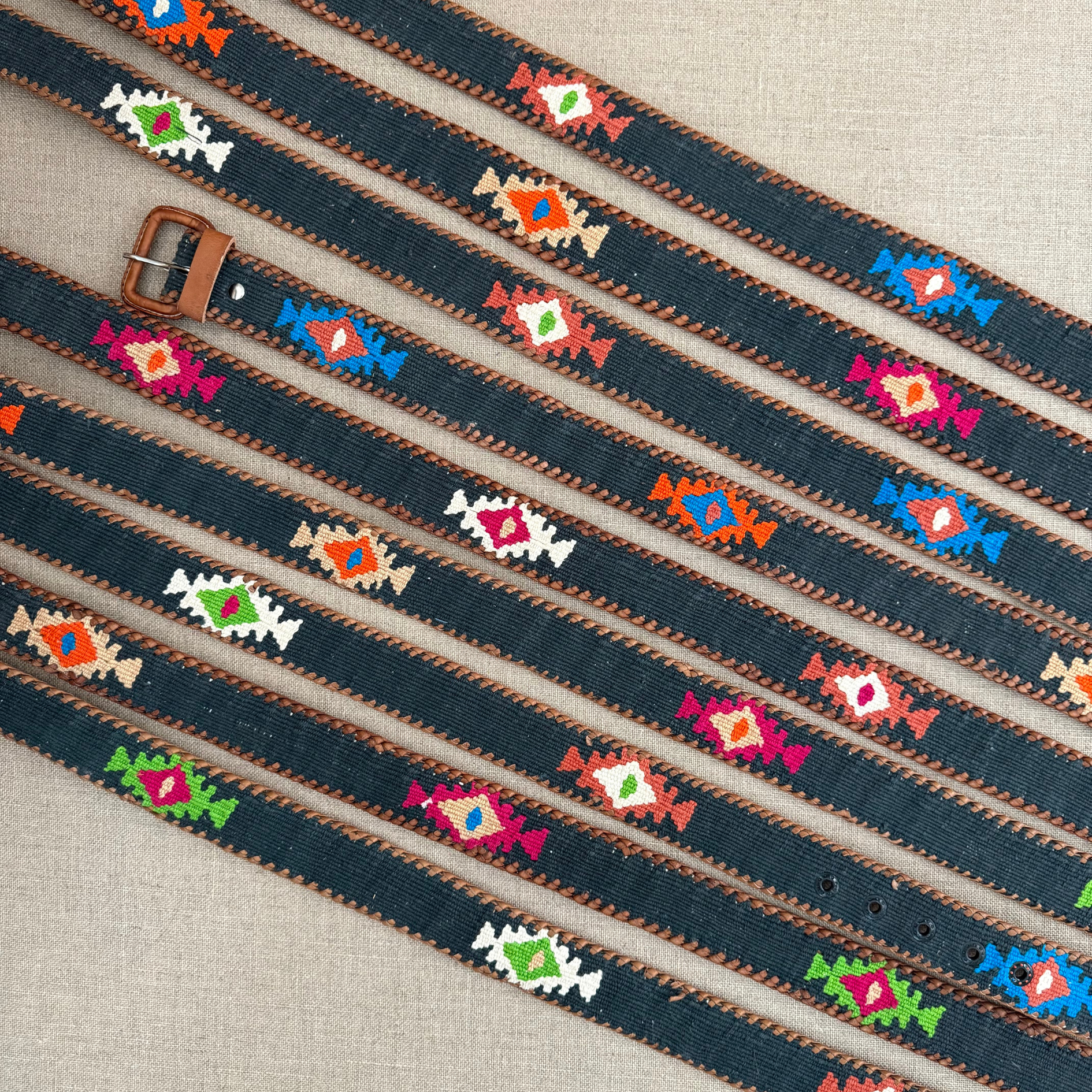 Wrap your waist in colorful, handcrafted style with our Cream Handwoven Guatemalan Whip-Stitched Belt. Featuring a vibrant, intricate tribal design, this artisan-made belt is woven by skilled Guatemalan hands, backed with durable vegetable-tanned leather, and finished with a classic leather buckle. Perfect as a stylish, unisex accessory that blends fashion with function, adding a touch of handmade craftsmanship to any outfit.