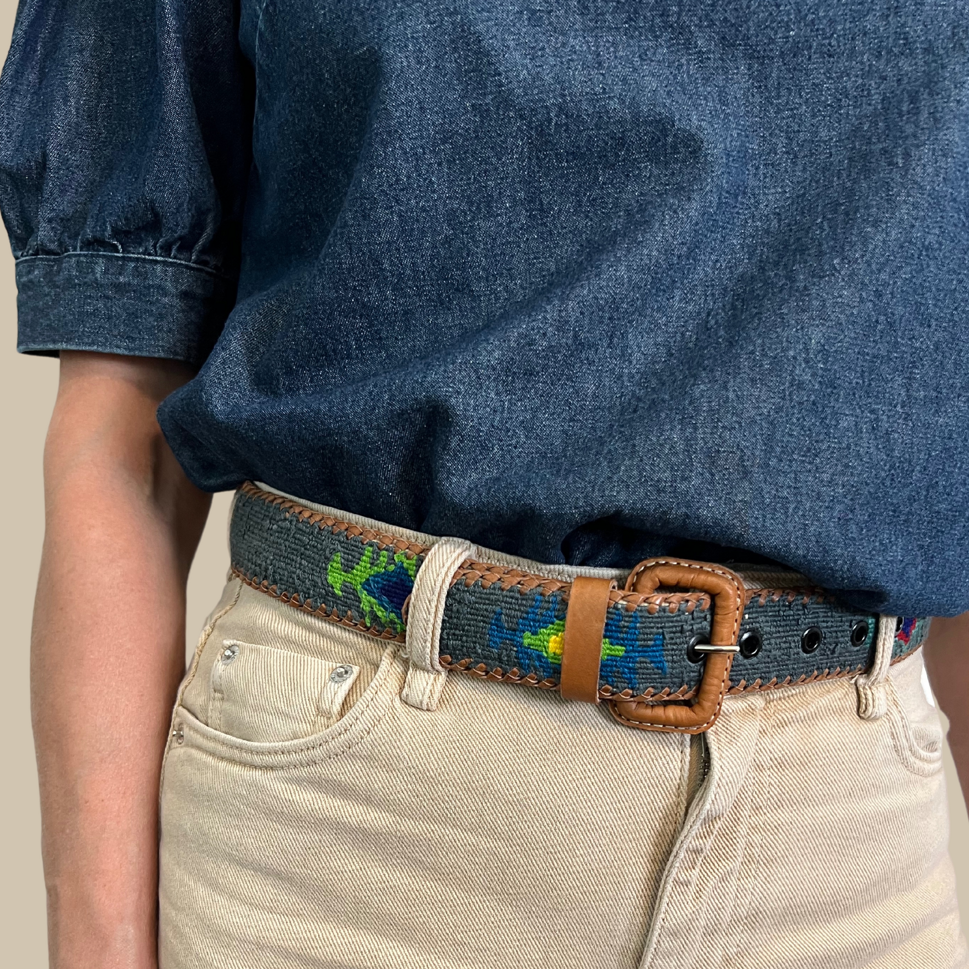 Denim-Colored Handwoven Guatemalan Whip-Stitched Belt