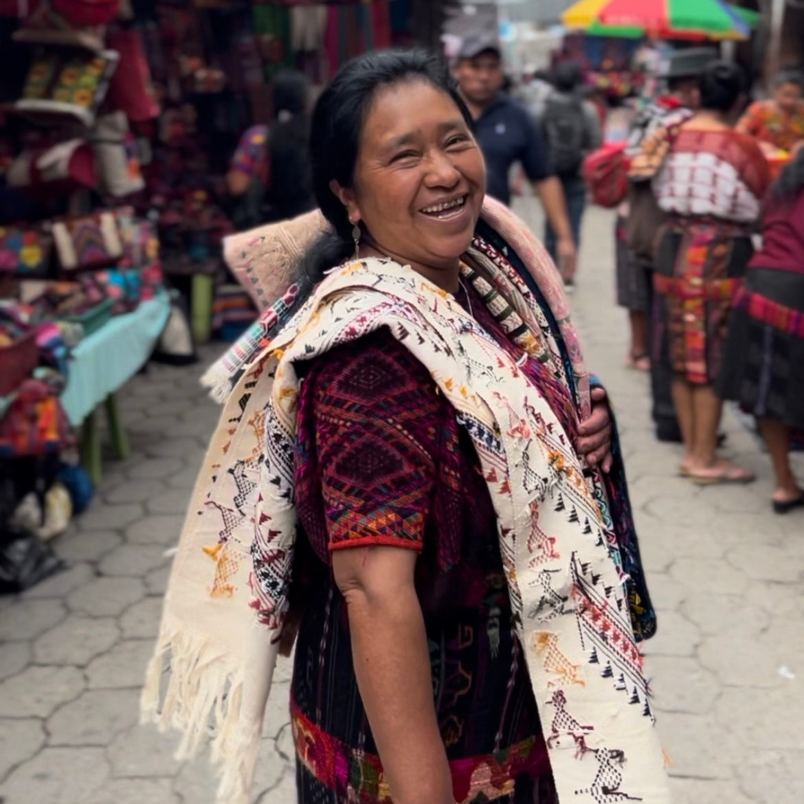 MARIA XIRUM has a booth in the Chichicastenango market where she sells all kinds of handmade items. When she is not in the market, she weaves and crochets with family and friends. Maria makes Intertwined's striped cotton handwoven blankets.
