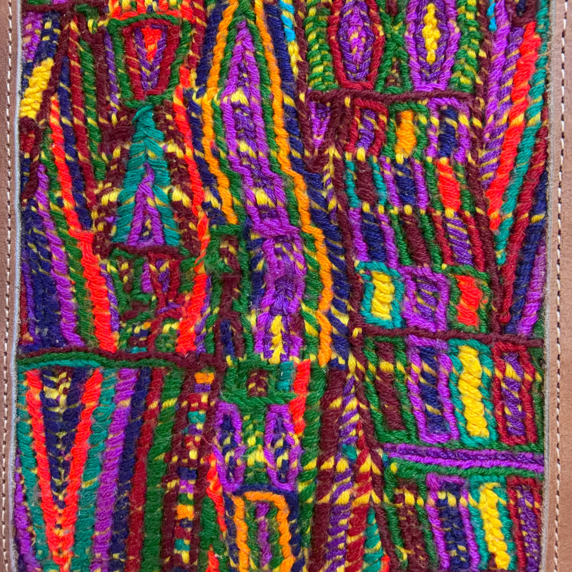 At Cuero Malec, a Guatemalan leather workshop, skilled artisans carefully transform these vintage textiles into sturdy, beautifully constructed bags. The result is a striking blend of traditional craftsmanship and modern design—an artisan tote that celebrates heritage while giving new life to extraordinary handwoven fabric.