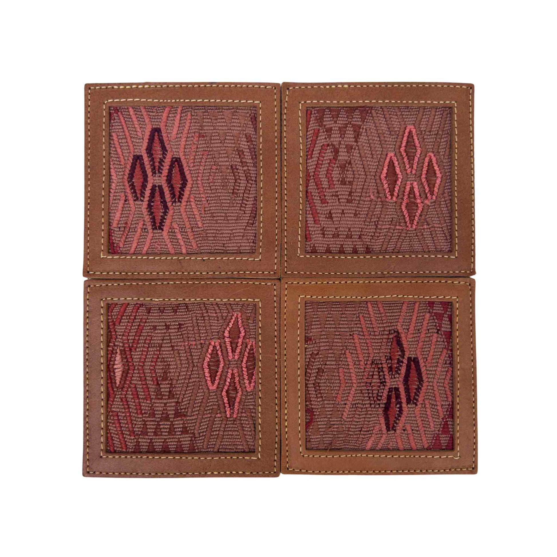 Huipil & Leather Coasters - Rose Diamond