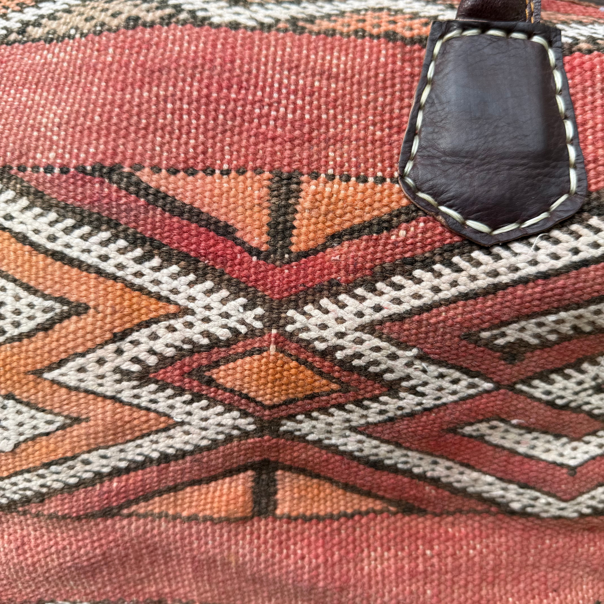 Moroccan sustainably sourced, vegetable tanned leather and wool vintage kilim.