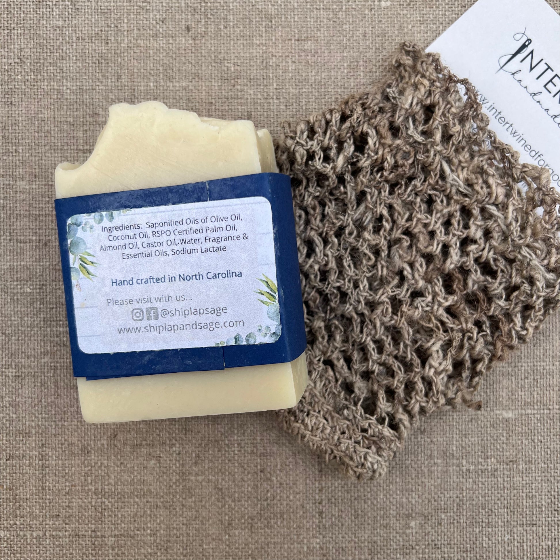 Introducing our Nettle Soap Bag with Handcrafted Soap! Nettle grows wild in the Himalayan mountains and is harvested by local farmers and processed without any chemicals or machines. It's the perfect material for exfoliation - not too rough, not too delicate. Plus, it's completely sustainable and compostable (when it finally wears out). Our Nettle Soap Bag comes with a wonderful handmade soap from Shiplap & Sage, a North Carolina woman-owned company. We searched high and low for the perfect North Carolina-made soap, and we think you'll agree we found it!