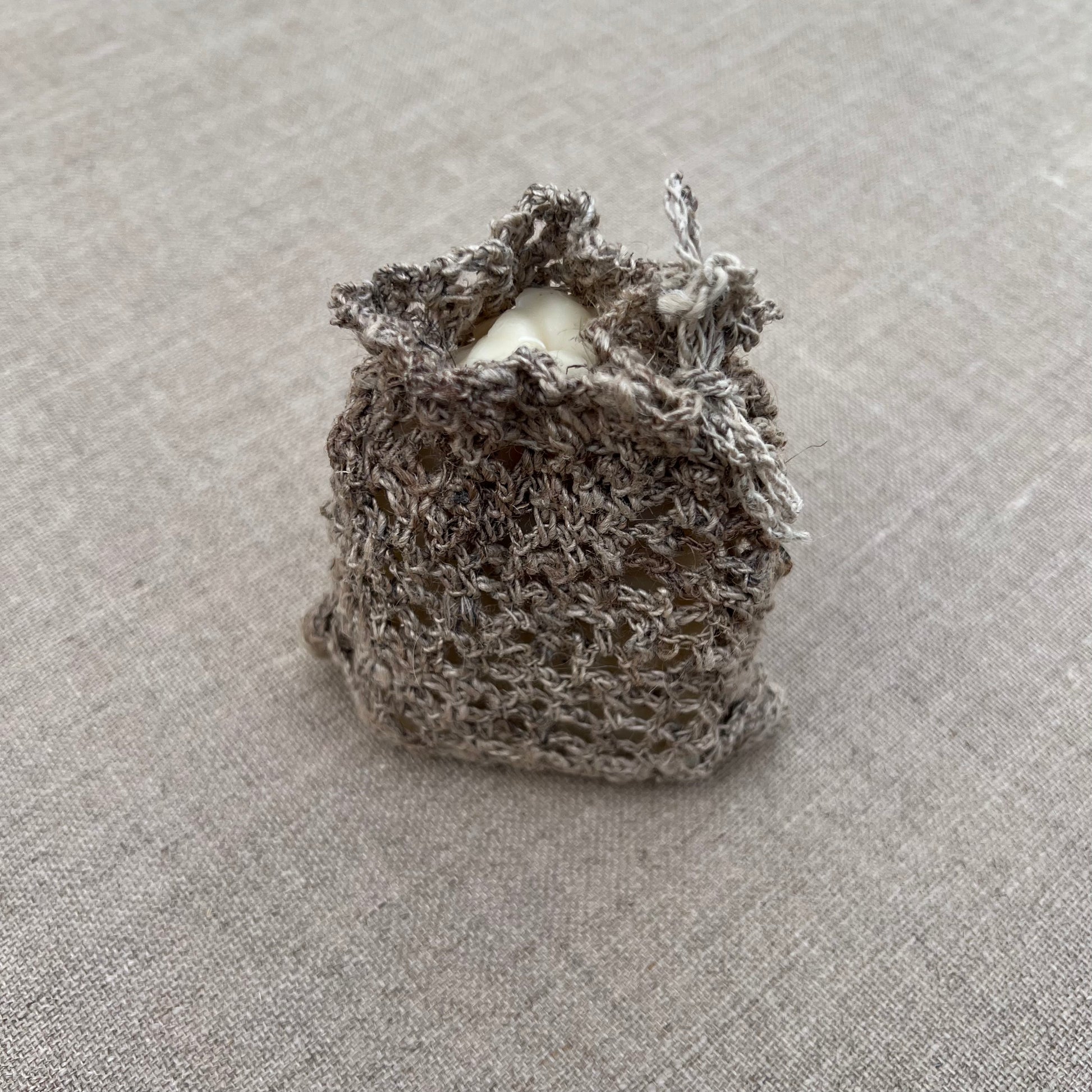 Soap bag is handmade with Himalayan nettle. See soap ingredients in photo.