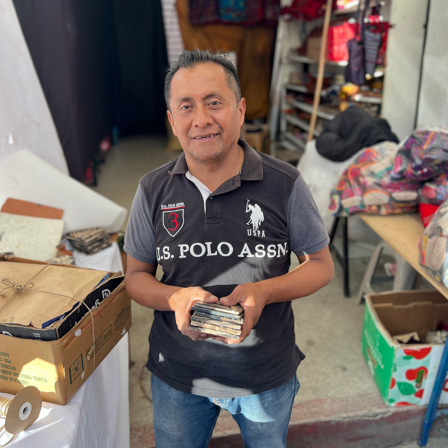 TOMAS LASTOR is a master ceramist in Chichicastenango, Guatemala. He creates exquisite ceramics, including vases, pots, and coasters, using locally sourced clay. After firing in ovens in his workshop, he hand-paints each piece with fun nature-inspired patterns.